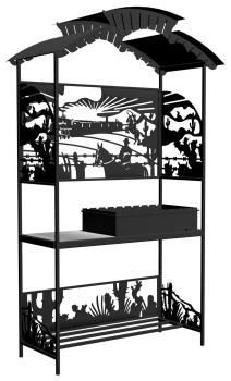 Мангал Дикий Запад Лайт – это металлический разборный мангал среднего размера с крышей и с резными рисунками дикого запада.