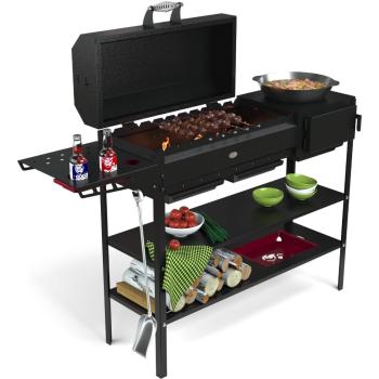 Удобная полка позволит Вам хранить все необходимые для готовки предметы. А вместительная дровница решит проблему с хранением топлива для мангала.