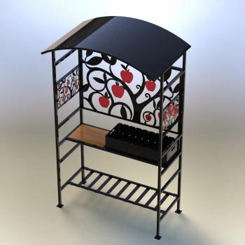 Крыша над мангалом защищает жаровню от попадания осадков. Витраж с яблоками создаёт привлекательный внешний вид данному изделию.