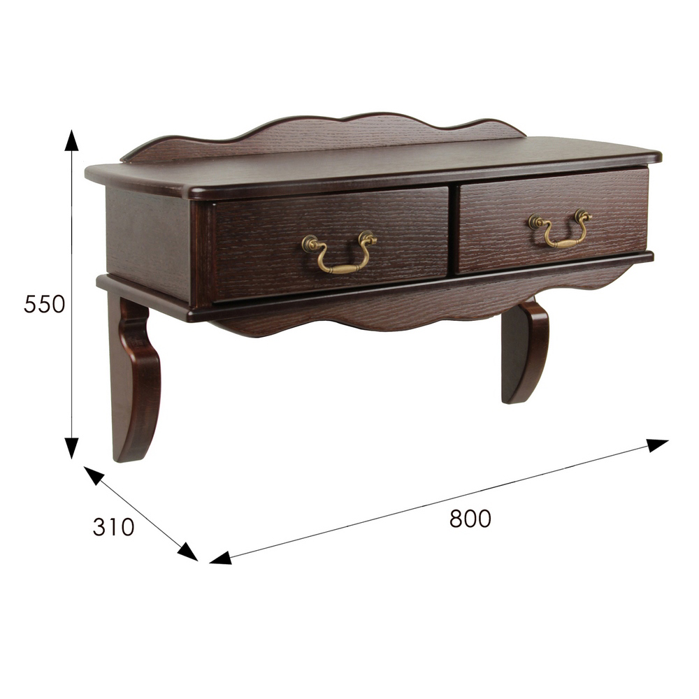 Элегантная конструкция, удобные ящики, крепление к стене – этот консольный столик станет украшением вашего интерьера. А в сочетании с банкеткой и зеркалом из серии “Берже” создаст приватный женский туалетный уголок. Модель укомплектована двумя выдвижными ящиками с декоративными ручками, все поверхности покрыты матовым лаком.