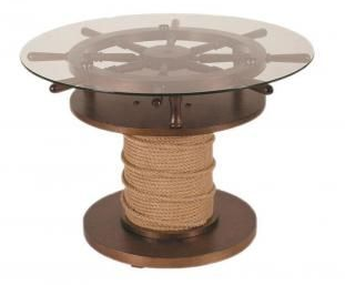 Стильный, уникальный журнальный столик для создания уютного интерьера в морском стиле. Штурвал и основание исполнены из натурального дерева. Натуральный джутовый канат. Надежная упаковка и простая сборка. Отличный подарок мужчинам, увлекающимся морской тематикой.