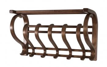 Вешалка настенная В5Н – полностью деревянная вешалка в пространстве прихожей квартиры или частного дома. Модель В5Н – экономичный вариант модели В7Н. По функционалу обе модели идентичны. Пять крючков для одежды, столько же для головных уборов, полочка на которой можно хранить коробки, или просто бытовые мелочи. Крючки вешалки изготовлены по технологии гнуто-клеенного шпона, что с одной стороны обеспечивает высокую прочность крючков, с другой стороны позволяет сделать крючки изящными. Вешалка В5Н – простой и экономичный вариант организации прихожей в классическом стиле, в ретро стиле, вешалка отлично впишется в интерьер в стиле шале.