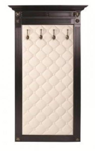 - Имитация капитоне выполнено из эко-кожи и надежно предохраняет одежду. Пилястры по бокам вешалки с декоративными элементами, патинированными под бронзу, и внушительных размеров карниз, делают вешалку массивной, полностью относят ее к классическому стилю