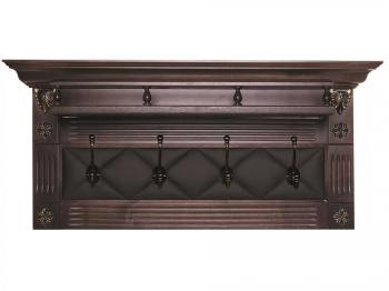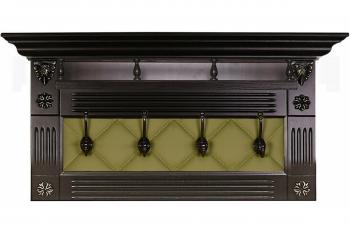 Четыре крючка расположены в зоне с имитацией капитоне, выполненной из экокожи, и обрамленной массивной рамой с фрезеровками, создающими эффект пилястр.