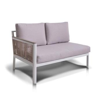 “Париж” модуль диванный правый изготовлен из алюминиевого каркаса белого цвета. Боковины оплетены роупом – эластичными лентами из полиэфирных волокон, цвет бежевый.