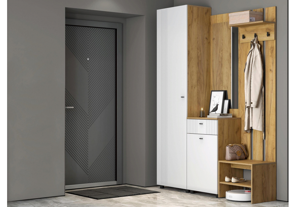 Модульная прихожая Woodville Эдолина комплектация 1 сочетает в себе практичность и отличный внешний вид. Материал ЛДСП во всех цветовых вариантах подчеркивает Современный стиль интерьера.
