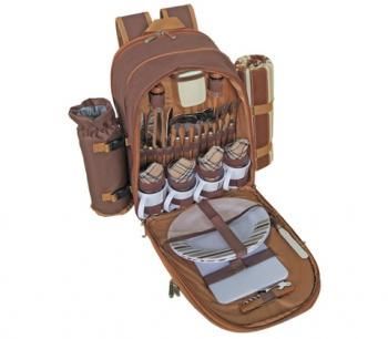 Внутри сумки имеется все необходимые столовые приборы на четыре персоны: ложки, вилки, ножи, тарелки, солянка, перечница, штопор, бокалы.