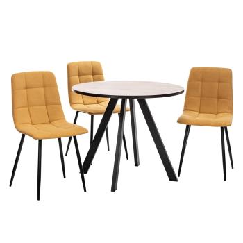 Хотите купить обеденный комплект для небольшой кухни? Круглый стол станет символом единения семьи и поможет сэкономить полезное пространство на небольшой кухне. Именно такими качествами обладает нераздвижной стол Leset Франк. Столешница из ЛДСП 22 мм высшего качества. В тандеме с черными ножками изделия выглядят стильно и современно. Стол имеет выверенную эргономику опор, что обеспечивает устойчивость и комфортное размещение участников трапезы. Круглый стол не имеет острых углов и безопасен для детей. Стулья “Скай” выполнен из окрашенного металла, с мягкой обивкой. Наконечники на ножках стульев, защищают поверхность пола от нежелательных повреждений. Подойдет для кухни и столовой в современном стиле.