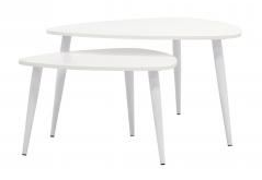 Два журнальных столика с белой треугольной столешницей разного размера в наборе. Столешница изготовлена из МДФ, ножки металлические. Белый цвет столика не перетягивает внимание и хорошо сочетается с разными фактурами и материалами мебели.