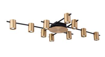 Настенно-потолочный светильник от итальянского бренда Moderli. Цилиндрические плафоны из алюминия латунного цвета создают яркое и направленное вниз освещение. Источником света служат лампы с цоколем GU10. Металлический каркас расположен вокруг крепежной планки с декорированной вставкой. Сочетание латунного и черного цвета придают светильнику изящный и стильный образ. Небольшая высота светильника не нагромождает пространство. Данная модель прекрасно будет смотреться в любом интерьере в современном стиле.