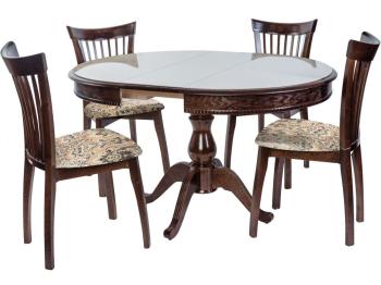 Обеденная группа «ДМФ Аврора Стол Фабрицио-1 Glass и 4 стула Тулон» — это стильный комплект, который включает в себя стол с отделкой в темном ореховом цвете и четыре стула с обивкой Андрис Вензель 37/1. Изготовленная Димитровградской мебельной фабрикой «Аврора», эта мебель выполнена из экологически чистого массива березы, что обеспечивает долговечность и безопасность.