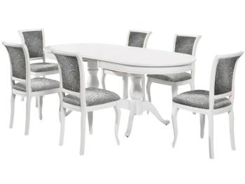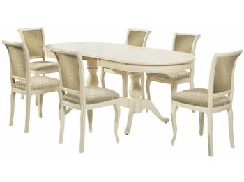 Обеденная группа «ДМФ Аврора Стол Фабрицио-2 овал и 6 стульев Кабриоль» — это изысканный комплект, который включает стол с овальной столешницей в белом эмалевом исполнении и шесть стульев с обивкой Базар 149/2. Изготовленная Димитровградской мебельной фабрикой «Аврора», эта мебель выполнена из экологически чистого массива березы, что обеспечивает долговечность и безопасность.
