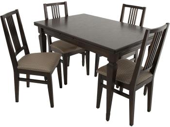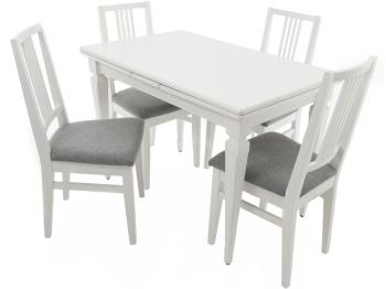 Обеденная группа «ДМФ Аврора» включает стол «Греция» в белом эмалевом исполнении и четыре стула «Никас», обтянутые тканью Браво 28. Этот комплект был создан Димитровградской мебельной фабрикой «Аврора» из экологически чистого массива березы. Столешница выполнена из МДФ и покрыта натуральным дубовым шпоном, что придает ей стильный и современный вид.