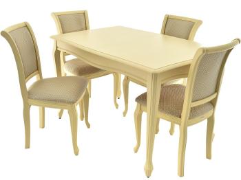 Обеденная группа «ДМФ Аврора Стол Кабриоль и 4 стула Кабриоль» — это стильный комплект, состоящий из стола в крашении Тон 10 (слоновая кость) и четырех стульев, обтянутых тканью Атина 160/1. Изготовленная Димитровградской мебельной фабрикой «Аврора», эта мебель изготавливается из экологически чистого массива березы, что исключает вредные примеси и обеспечивает долговечность.
