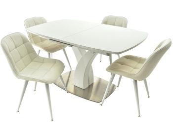Столешница выполнена из МДФ и покрыта натуральным закалённым стеклом, что придаёт изделию элегантный вид и прочность. Стулья имеют надёжный металлокаркас, обеспечивающий комфорт и долговечность.