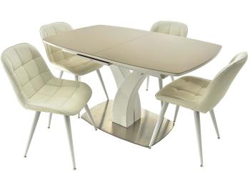 Обеденная группа «ДМФ Аврора Стол Нотр Дам и 4 стула Прованс» — это изысканный комплект, включающий стол с бежевой отделкой и стеклянной столешницей, а также четыре стула «Прованс», обитые кожзамом Батлер 08 и имеющие белые опоры. Изготовленная Димитровградской мебельной фабрикой «Аврора», эта мебель сочетает в себе стиль и высокое качество.