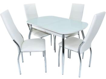 Обеденная группа «ДМФ Аврора Стол Ривьера СВ и 4 стула Асти» — это элегантный комплект, который включает в себя стол с белой стеклянной столешницей и четыре стула «Асти», обитые кожзамом Батлер 08 с хромированными опорами. Изготовленная Димитровградской мебельной фабрикой «Аврора», эта мебель сочетает в себе стиль и практичность.