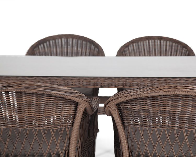 В качестве рабочей поверхности плетеного обеденного стола выступает стеклянная столешница, которая крепится при помощи вакуумных силиконовых держателей и поставляется в собранном виде.