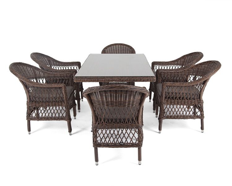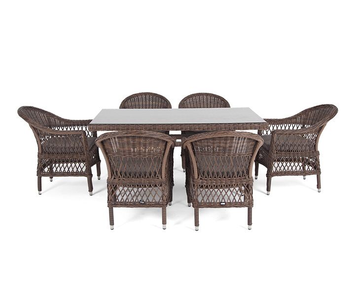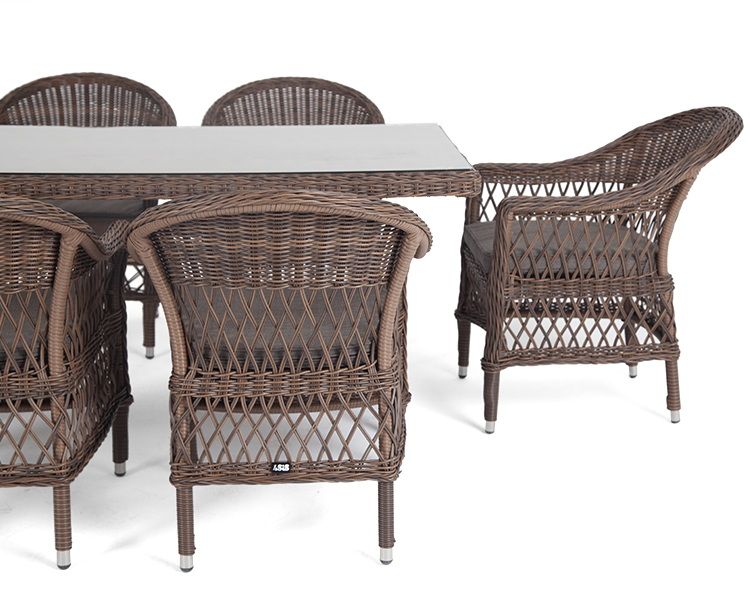 Обеденная группа «Амароне» относится к числу садовой мебели для обустройства открытых террас и веранд.