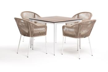 - 4 плетеных стула «Лион» из роупа, размером – 570×620×820 мм, цвет роупа – бежевый, каркас – белый.
