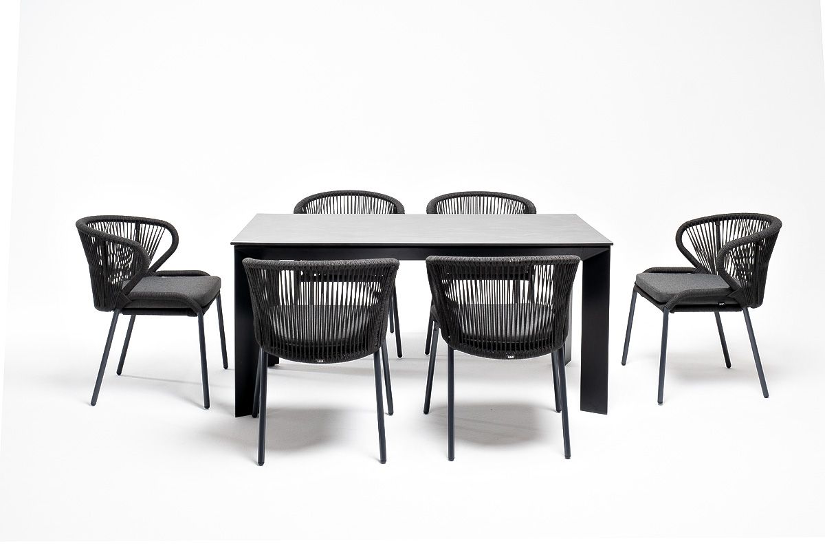Обеденная группа «Венето» предназначена для комфортного размещения 6 персон и станет отличным дополнением к вашей территории для проведения трапезы с друзьями или семьей. Комплект из стола «Венето» и 6 стульев «Милан» выполнен в едином стиле, комбинируя качественные материалы и современный дизайн.