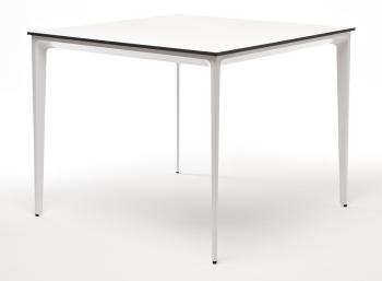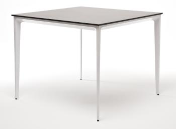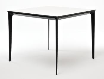 Столешница выполнена из современного высококачественного монолитного компакт-пластик HPL, толщиной 12 мм в цвете «серый гранит». Материал устойчив к высоким температурам, попаданию влаги и может использоваться при любых погодных условиях. Подстолье изготовлено из крашеного алюминия черного цвета.