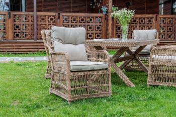 Каркас ISABELLA обшит искусственным ротангом круглового плетения диаметром 6 мм. Ротанг является популярным материалом для мебели из-за своей прочности, гибкости и устойчивости к воздействию погодных условий. Круглое плетение ротанга придает креслу элегантный и стильный внешний вид, а также обеспечивает комфортное сидение благодаря гибкости материала.
