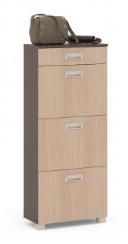 Содержать обувь в полном порядке и чистоте поможет данная модель обувного шкафа. Состоящая из трех отсеков, где располагается обувь, и выдвигающегося ящика для аксессуаров или предметов обихода, обувница является прекрасным функциональным дополнением интерьера прихожей.