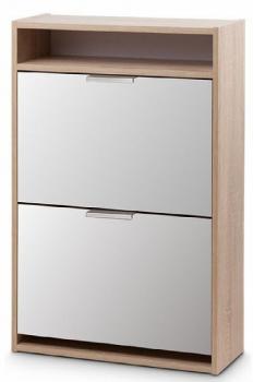 удобное хранение обуви. Вверху расположена одна открытая ниша. Изделие стоит на ножках – опорах. Дверцы укомплектованы ручками.