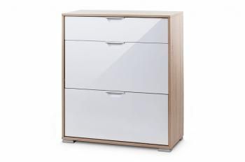 Модель оборудована выдвижным ящиком сверху и двумя секциями для обуви. Благодаря функциональной конструкции и дизайну обувница вместительна и удобна в использовании.
