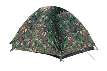 Внешний тент камуфлированный, водостойкость 4 000 мм. Два вентиляционных клапана. Все швы тента и остальных частей палатки проклеены термоусадочной лентой. Оттяжки со светоотражающей ниткой. Внутренняя палатка тоже камуфляжной расцветки. Полностью дышащий материал. Входы D-образные, на двухзамковых молниях, их можно открывать и закрывать с занятыми руками. Оба входа продублированы москитной сеткой.
