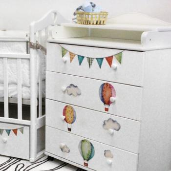 Компактный пеленальный комод “Путешествие на шаре” оснащен 4 вместительными ящиками с шариковыми направляющими. Корпус выполнен из ламинированной древесно-стружечной плиты (ЛДСП), фасады ящиков из МДФ.