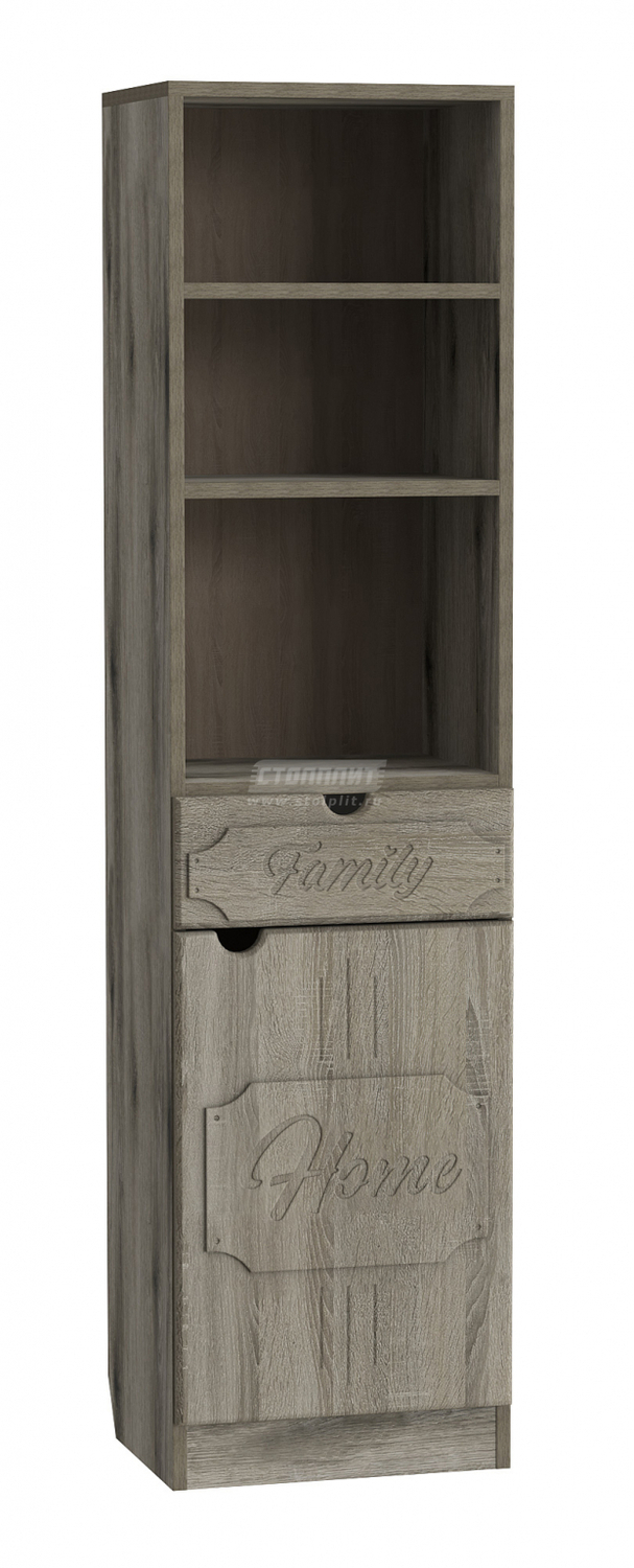 Пенал ДримСтар ДС-62 станет прекрасным дополнением вашей гостиной, спальни или детской комнаты. Пенал имеет три отделения, верхнее отделение с двумя открытыми полками, нижнее отделение с дверью и полкой, посередине выдвижной ящик, дно ящика двп 3 мм. Фурнитура: петли с доводчиками, телескопические направляющие полного выдвижения.