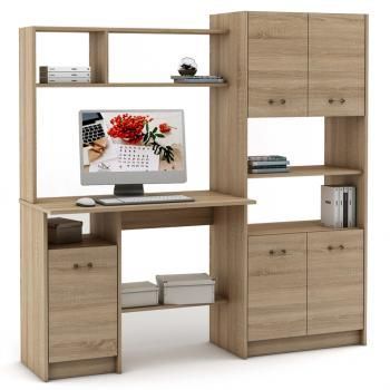 Письменный стол МФ Владимир Август-10 КСАВГ-10 – это красивая многофункциональная мебель, которая выполняет несколько функций. Подобная модель станет хорошим дополнением к рабочему кабинету. Также с помощью такого стола можно обустроить детям или подросткам, отличное место для учебы. Кроме стола, в комплекте есть еще надстройка с полками открытого типа. Сбоку разместился двухдверный вместительный шкаф, а с другой стороны большая ниша с дверцами. Модель доступна для заказа в нескольких цветовых решениях.