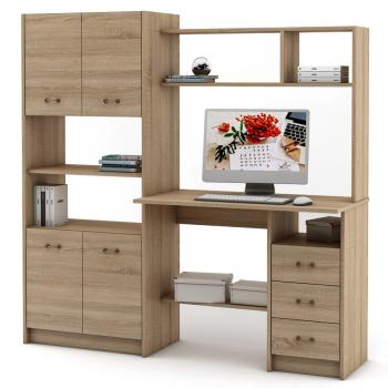 Письменный стол МФ Владимир Август-11 КСАВГ-11 – это красивая многофункциональная мебель, которая выполняет несколько функций. Подобная модель станет хорошим дополнением к рабочему кабинету. Также с помощью такого стола можно обустроить детям или подросткам, отличное место для учебы. Кроме стола, в комплекте есть еще надстройка с полками открытого типа. Сбоку разместился вместительный шкаф, а с другой стороны есть три выдвижных ящика для хранения мелочи. Модель доступна для заказа в нескольких цветовых решениях.