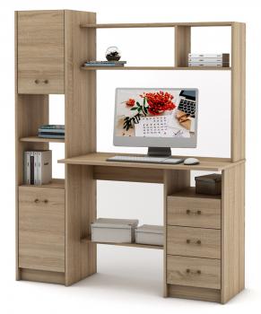 Письменный стол МФ Владимир Август-3 КСАВГ-3 – это красивая многофункциональная мебель, которая выполняет несколько функций. Подобная модель станет хорошим дополнением к рабочему кабинету. Также с помощью такого стола можно обустроить детям или подросткам, отличное место для учебы. Кроме стола, в комплекте есть еще надстройка с полками открытого типа. Внизу, с правой стороны стола размещено три выдвижных ящика, а с правой стороны есть большой шкаф, с двумя закрытыми полками и одной открытой. Мебель можно заказать в нескольких цветах.