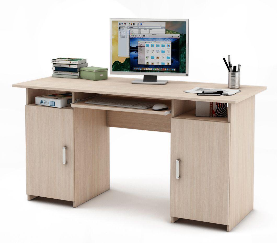 Письменный стол МФ Владимир Лайт-6К – отлично дополнит любое интерьерное решение. В наличии есть по одной нише с дверцами, размещены по обеих сторонах стола. Над нишами предусмотрено по одной полочке открытого типа. Также, здесь есть выдвижная полка для клавиатуры. Подобная модель станет хорошим дополнением к рабочему кабинету. Также с помощью такого стола можно обустроить детям или подросткам, отличное место для учебы. Стол достаточно просторный, но при этом не занимает много места. Мебель можно приобрести в нескольких цветовых вариантах.