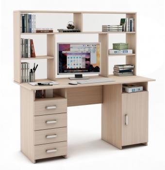 Письменный стол МФ Владимир Лайт-8 с надстройкой – это практичная и довольно красивая мебель, которая отлично дополнит любое интерьерное решение. С одной стороны стола предусмотрено просторный шкафчик с дверкой, а с другой стороны, четыре выдвижных ящика. Также, данная модель предусматривает просторную надстройку разделенную на шесть отдельных полок открытого типа. Подобная модель станет хорошим дополнением к рабочему кабинету. Также с помощью такого стола можно обустроить детям или подросткам, отличное место для учебы. Стол достаточно просторный, но при этом не занимает много места. Мебель можно приобрести в нескольких цветовых вариантах.