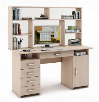 Письменный стол МФ Владимир Лайт-8Я с надстройкой – это красивая функциональная мебель. С одной стороны стола предусмотрено просторный шкафчик с дверкой, а с другой стороны, четыре выдвижных ящика. Также, данная модель предусматривает просторную надстройку разделенную на шесть отдельных полок открытого типа и дополнительно, еще один выдвижной ящик сразу под столешницей, в районе рабочего места. С помощью такого стола можно обустроить детям или подросткам, отличное место для учебы. Стол достаточно просторный, но при этом не занимает много места. Мебель можно приобрести в нескольких цветовых вариантах.