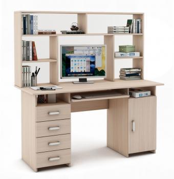 Письменный стол МФ Владимир Лайт-8К с надстройкой – отлично дополнит любое интерьерное решение. С одной стороны стола предусмотрено просторный шкафчик с дверкой, а с другой стороны, четыре выдвижных ящика. Также, данная модель предусматривает просторную надстройку разделенную на шесть отдельных полок открытого типа и дополнительно, полку для клавиатуры. Подобная модель станет хорошим дополнением к рабочему кабинету. Также с помощью такого стола можно обустроить детям или подросткам, отличное место для учебы. Стол достаточно просторный, но при этом не занимает много места. Мебель можно приобрести в нескольких цветовых вариантах.