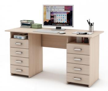 Письменный стол МФ Владимир Лайт-9 – это красивая и многофункциональная мебель, которая отлично дополнит любое интерьерное решение. Конструкция предусматривает восемь выдвижных ящиков. По четыре с каждой стороны стола. Мебель можно приобрести в нескольких цветовых вариантах. Подобная модель станет хорошим дополнением к рабочему кабинету. Также с помощью такого стола можно обустроить детям или подросткам, отличное место для учебы. Стол достаточно просторный, но при этом не занимает много места.