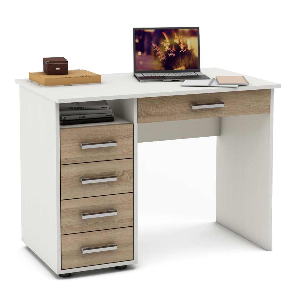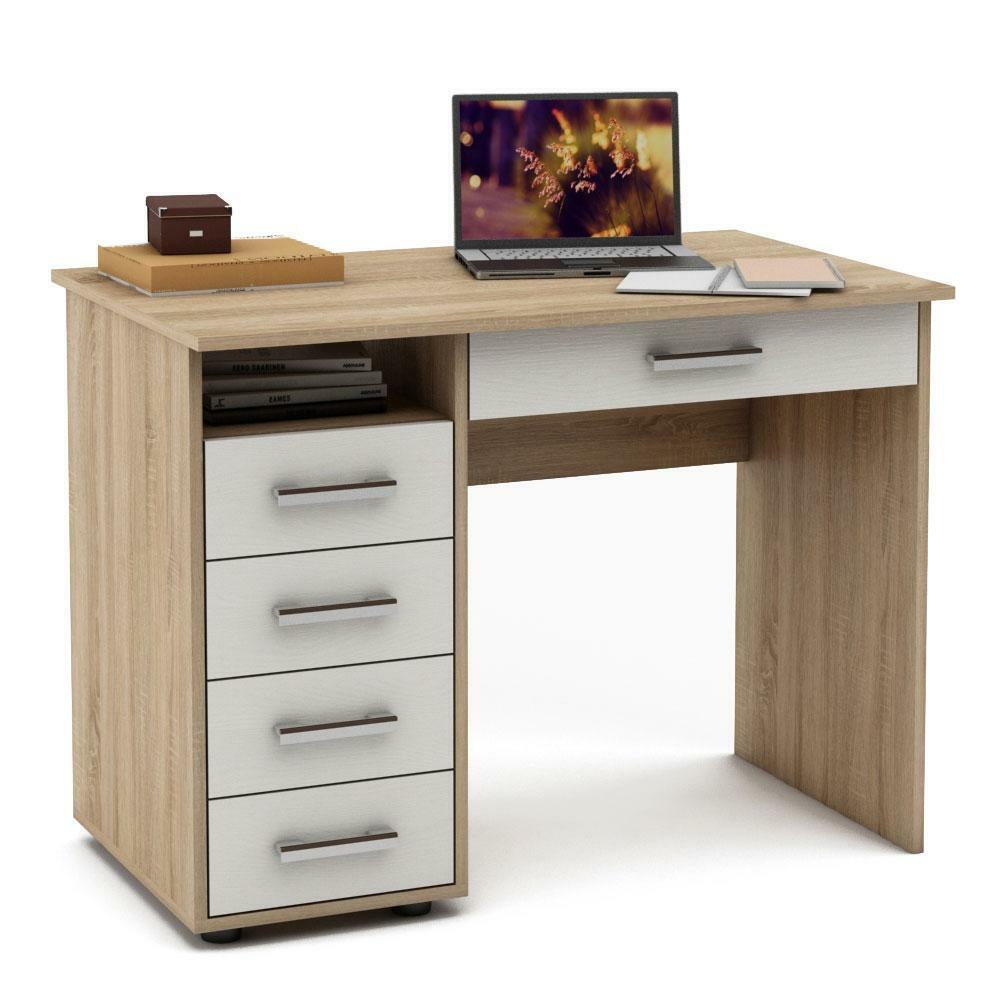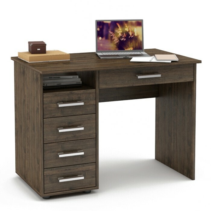 компьютером или ноутбуком, делать уроки, читать или писать. Модель выполненна из высококачественного ЛДСП. Стол с полкой и пятью ящиками