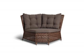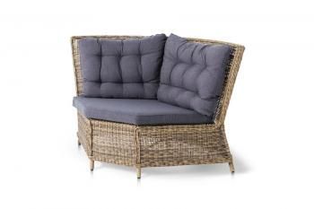 Бергамо, плетеный угловой диванный модуль, алюминиевый каркас, искусственный ротанг, ручное круглое плетение, цвет соломенный, размер 1630х900х980