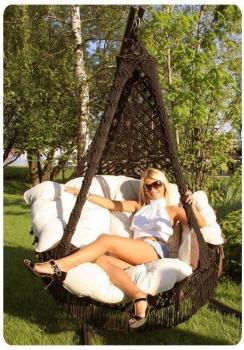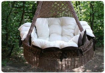 Модная новинка – подвесной гамак-кресло CARTAGENA с невероятно мягкими и комфортными подушками – сплетен вручную из полиамидной нити. Оно украшено эффектной бахромой и станет стильным акцентом в любом помещении и ландшафте. Чехлы у подушек сделаны из хлопко-полиэфирной ткани, она не теряет формы, износостойка, не мнется, держит цвет, хорошо «дышит», бежево-коричневого или зеленого цвета. Наполнитель подушек – принципиально новый безопасный и экологически чистый материал «холлофайбер».Этот материал не отсыревает, совершенно безопасен для здоровья, позволяет подушкам быстро восстанавливать форму, легко стирается. Для удобства в гамаке-кресле CARTAGENA предусмотрена регулировка по высоте передней части кресла, таким образом, что с помощью фиксаторов, находящихся внутри декоративной оплетки, можно настроить наиболее комфортное положение кресла.