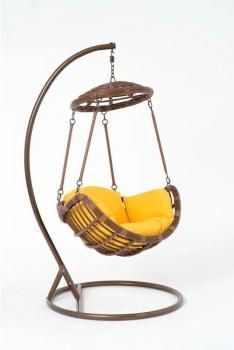 Подвесное кресло Vinotti 44-004-18 – это шикарная садовая мебель продумана до мелочей для вашего лучшего, комфортного отдыха. Такое кресло станет любимым местом для отдыха всей семьи. Модель имеет небольшое подобие круглого навеса, который поможет скрыться от палящего солнца, а функционал качели позволит максимально расслабится и отдохнуть. Коричневый цвет мебели смотрится стильно и дорого, такая себе имитация под дерево. В дополнение идет мягкая подушка с качественного материала. Мебель выглядит очень утонченно благодаря тонким линиям стального каркаса и тонкому плетеному основанию, но несмотря на хрупкий вид, модель очень прочная и устойчива. Креслу не страшны плохие погодные условия такие как дождь или сильный ветер. Изделие будет служить вам много лет.