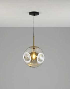 Современный подвесной светильник Amo. Стеклянный плафон диаметром 25 см обеспечит комфортное и оригинальное освещение. В качестве источника света подойдут лампы накаливания или LED с цоколем Е27. Светильник надежно и просто крепится к потолку с помощью крепежной планки. Небольшая площадь освещения в 4 м² идеально подойдёт для кухни, прихожей, обеденной зоны и дополнит любой интерьер в современном силе. При монтаже светильник можно отрегулировать по высоте.