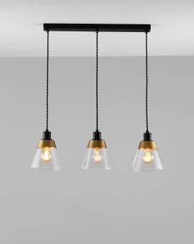 Лаконичный подвесной светильник из серии Brizzi в стиле лофт. Плафоны выполнены из прозрачного стекла с декорированной золотой полоской. В качестве источника освещения подойдут лампы накаливания или LED с цоколем Е27. Стилизованная оплётка провода дополняет сдержанный образ светильника. Общая высота составляет 120 см, отличный вариант для комнат с высокими потолками. Данная модель станет прекрасным источником света для барной или обеденной зоны. При монтаже светильника, плафоны можно отрегулировать по высоте.