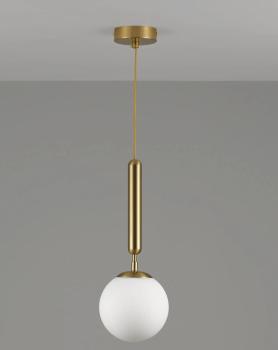 Подвесной светильник из коллекции Host в современном стиле. Минимализм и утончённый дизайн. Металлический каркас латунного цвета гармонично сочетается с матовым плафоном в форме шара. Высота светильника 120 см, отличное решение для высоких потолков. Данная модель сможет дополнить любой современный интерьер дома и подойдёт для освещения спальни, кухни, холла или гостиной комнаты. При монтаже светильника, высоту можно отрегулировать.