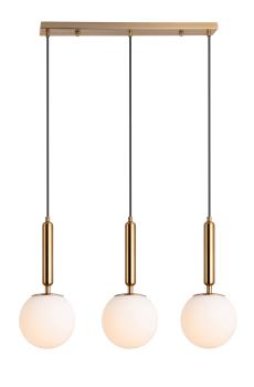 Подвесной светильник из коллекции Scrumbel. Металлический каркас латунного цвета гармонично сочетается с матовыми плафонами в форме шара. Высота светильника 120 см., отличное решение для высоких потолков. Площадь освещения составляет 14м². Данная модель сможет дополнить любой современный интерьер дома и подойдёт для освещения спальни, кухни, холла или гостиной комнаты. При монтаже светильника, плафоны можно отрегулировать по высоте.