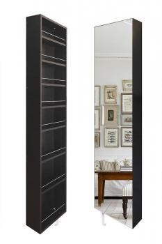 Парящий шкафчик с зеркало в полный рост, за которым скрываются 8 широких и глубоких полочек с декоративными барьерами из нержавеющей стали. Прекрасное решение для прихожей, так как сочетает глубокие вместительные полки с широким полноразмерным зеркалом, которое можно повернуть под удобным углом. Корпус изготовлен из качественного ЛДСП. Доступны два стандартных цветовых решения: венге и выбеленный дуб, также вы можете заказать любой нужный вам цвет из нашего списка (Белый матовый (влагостойкий) RAL 9003, Графит, Ясень Светлый, Ясень Темный, Дуб Солсберри, Дуб Сонома, Ноче Мария Луиза, Ноче Экко, Дуб Галиано, Молочный Дуб).